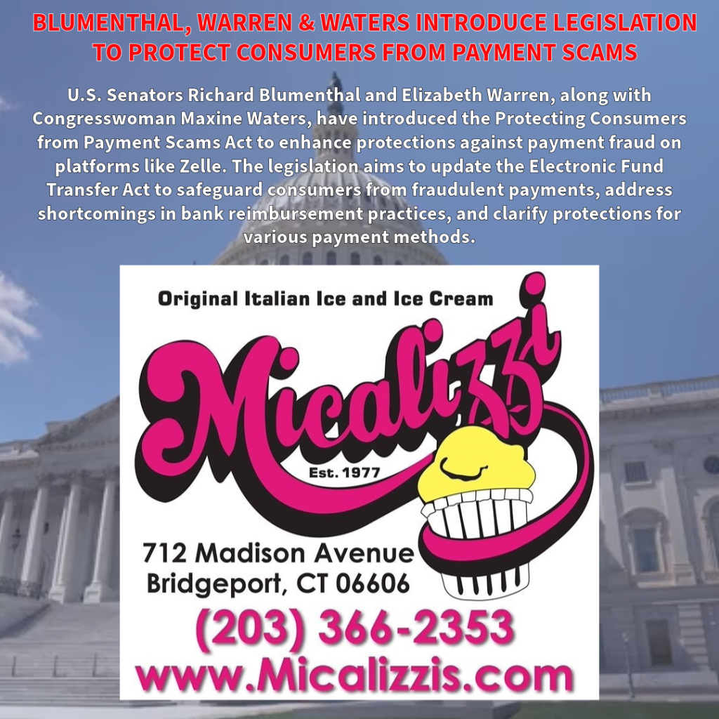 [Hartford, CT] – Today, U.S. Senators Richard Blumenthal (D-CT), Chairman of the Senate Permanent Subcommittee on Investigations, and Elizabeth Warren (D-MA) joined Congresswoman Maxine Waters (D-CA), Ranking Member of the House Financial Services Committee, to announce introduction of the Protecting Consumers from Payment Scams Act, legislation to better protect consumers making online payments through digital payment platforms like Zelle.