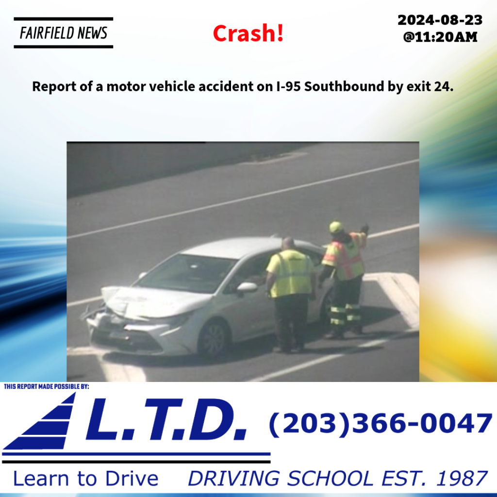 Report of a motor vehicle accident on I-95 Southbound by exit 24.
