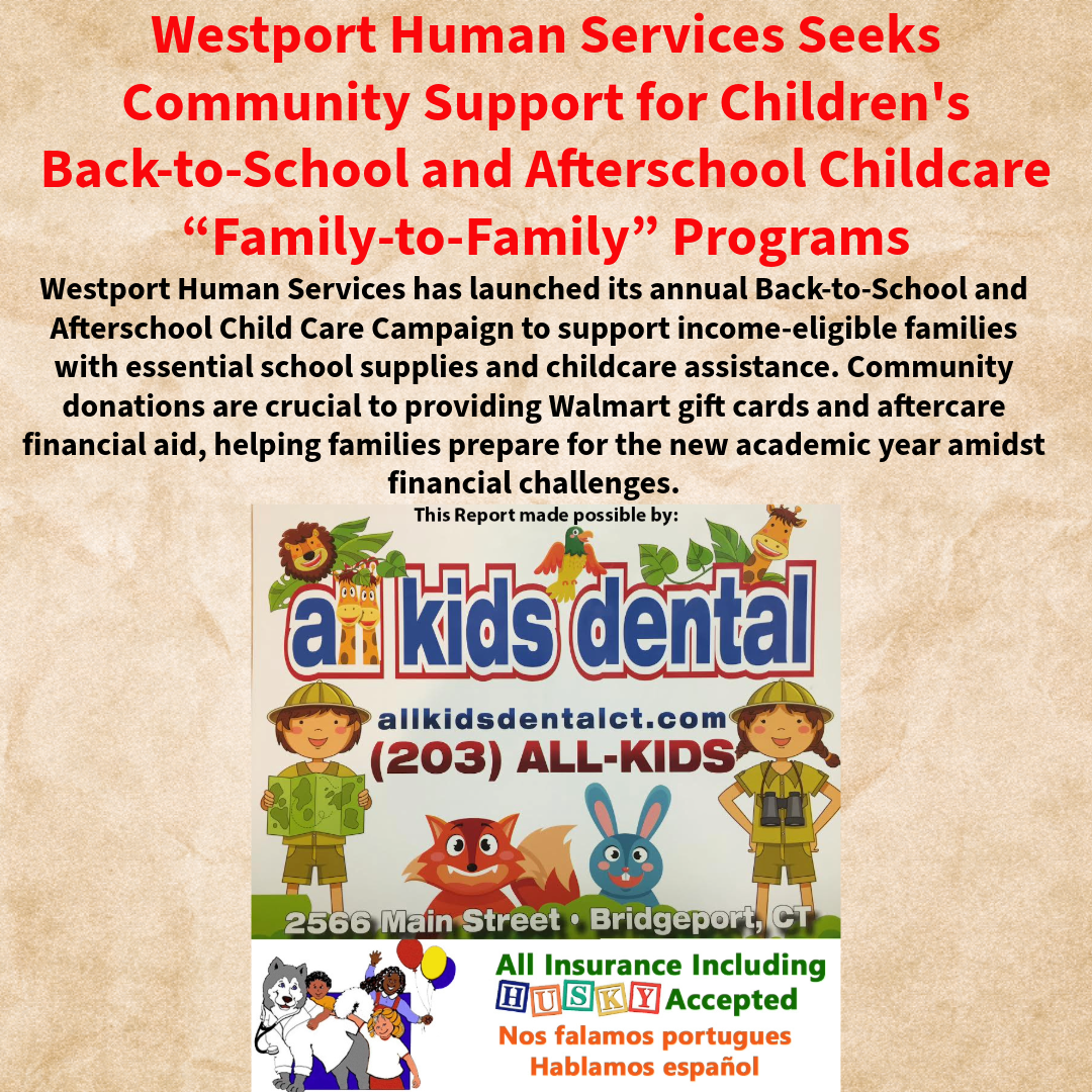 Westport, CT—Human Services Director Elaine Daignault announced the launch of the Town’s annual Back-to-School and Afterschool Child Care Campaign today. The Family-to-Family fundraising campaign helps income-eligible Westport families and students prepare for the upcoming academic year.