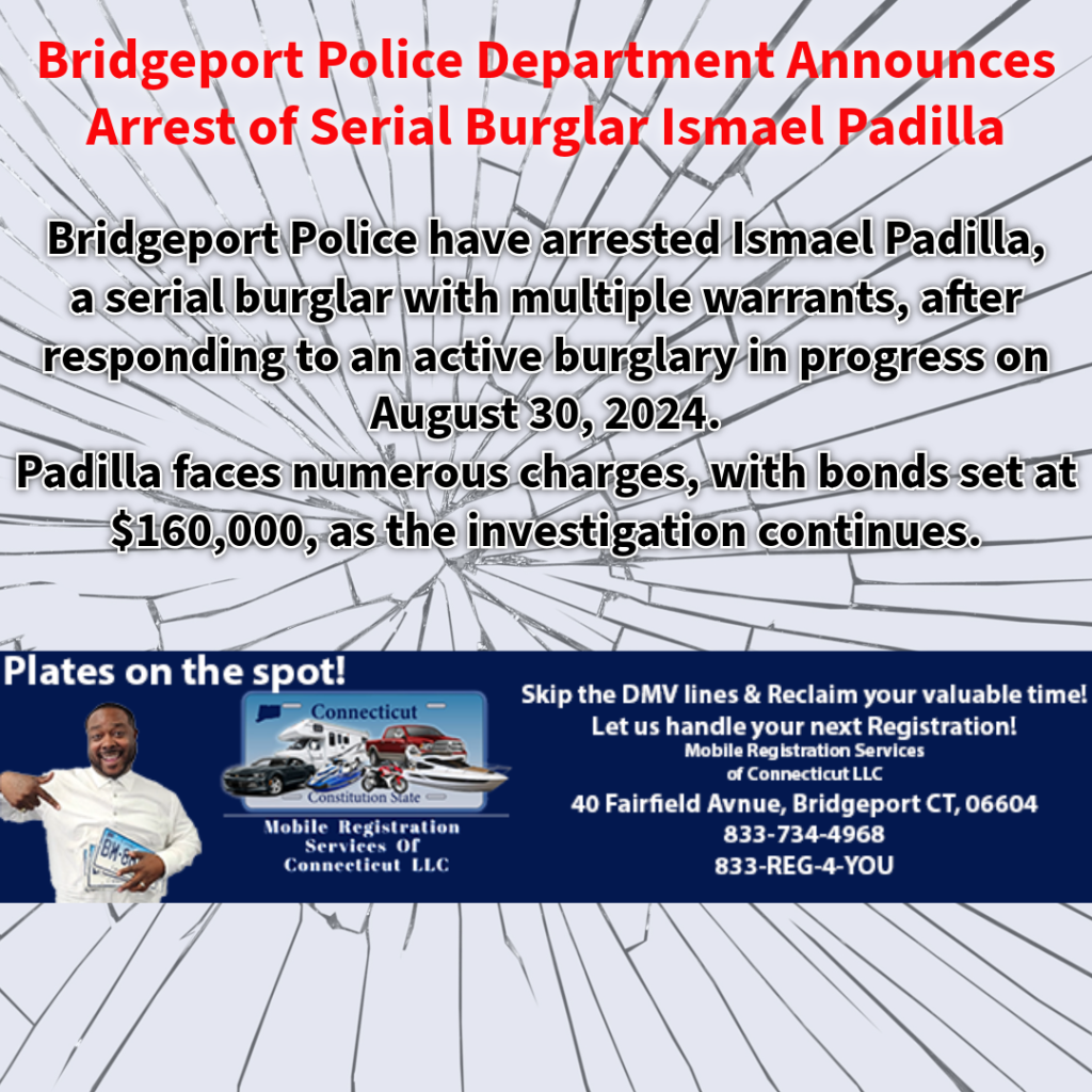 On 08/30/2024, the Bridgeport Police Department successfully apprehended Ismael Padilla, a suspect with a lengthy criminal record, wanted in connection with multiple burglary warrants in both Bridgeport and Fairfield. Padilla’s arrest marks a significant development in ongoing efforts by Det. Palatiello to address a series of burglaries that have affected the local community.