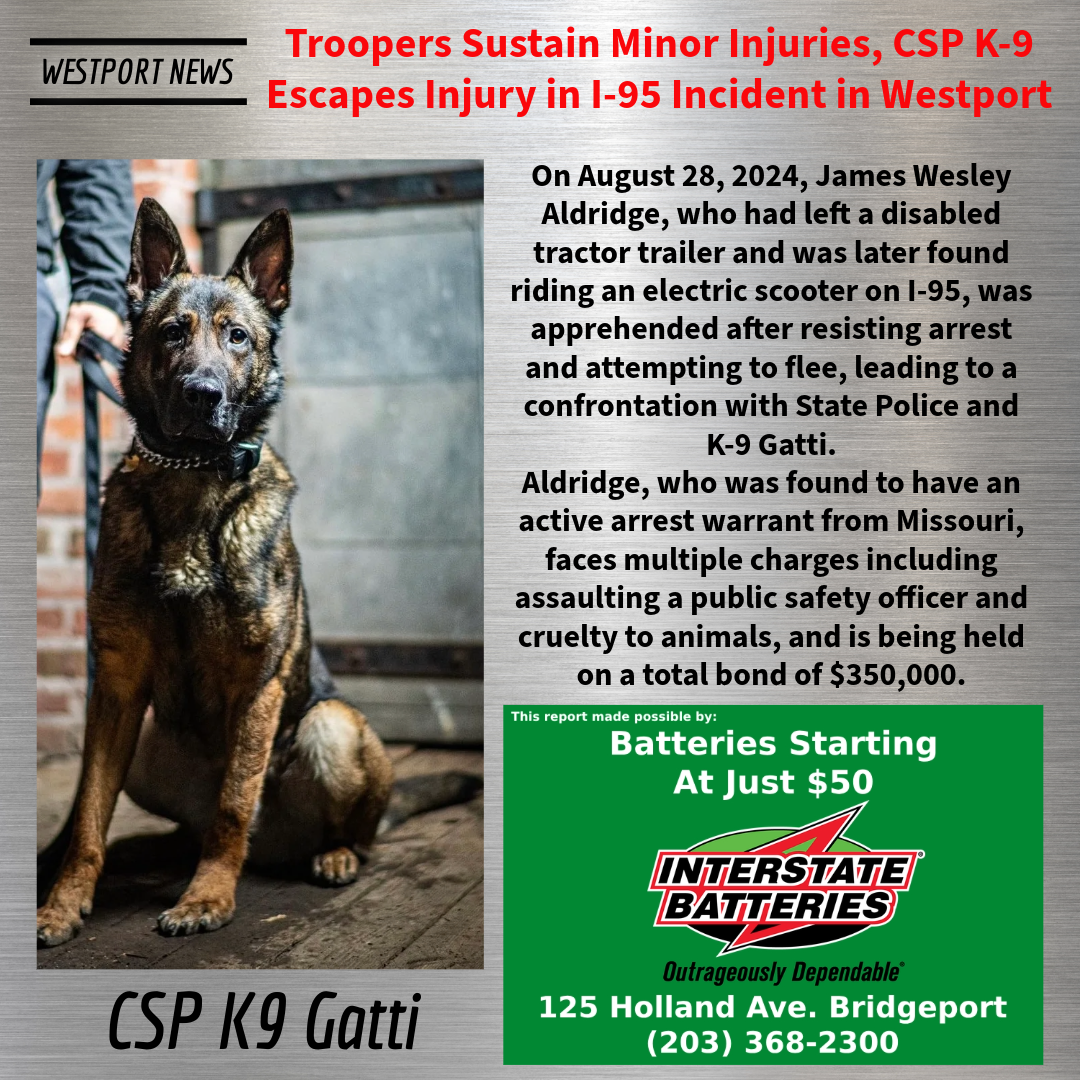 For the above charge, Aldridge was held on a $250,000 bond and scheduled for arraignment at Stamford Superior Court, on 08/29/2024.