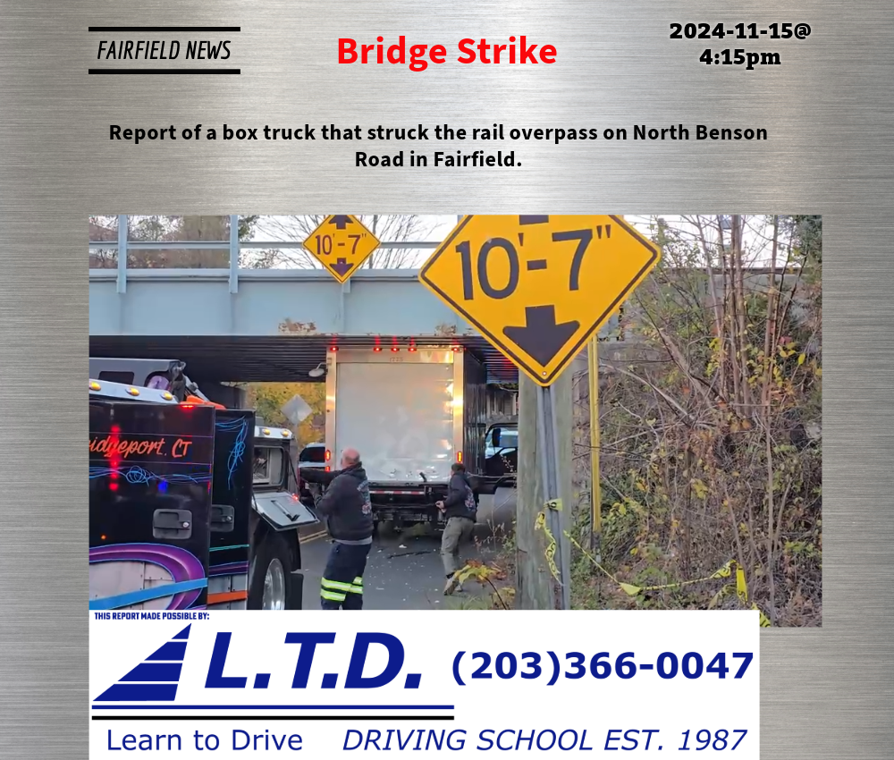 Report of a box truck that struck the rail overpass on North Benson Road in Fairfield.