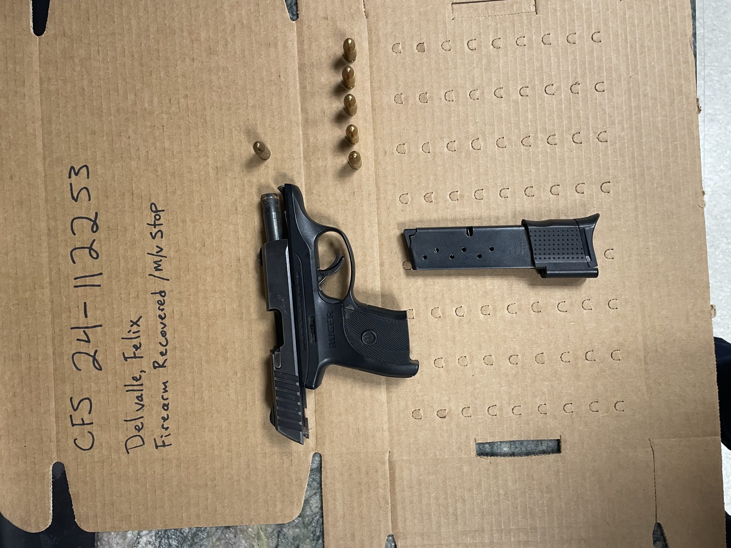 On the evening of December 10, Bridgeport Officers Salce and Rrapi were patrolling the Hollow area when they stopped a speeding vehicle on Harral Avenue for lacking a front license plate. The driver, identified as 35-year-old Felix Manuel Delvalle of Bridgeport, was found to be uninsured and acting suspiciously. During a safety pat-down, officers recovered a loaded Ruger handgun with six rounds of ammunition, later confirmed as stolen in 2018.