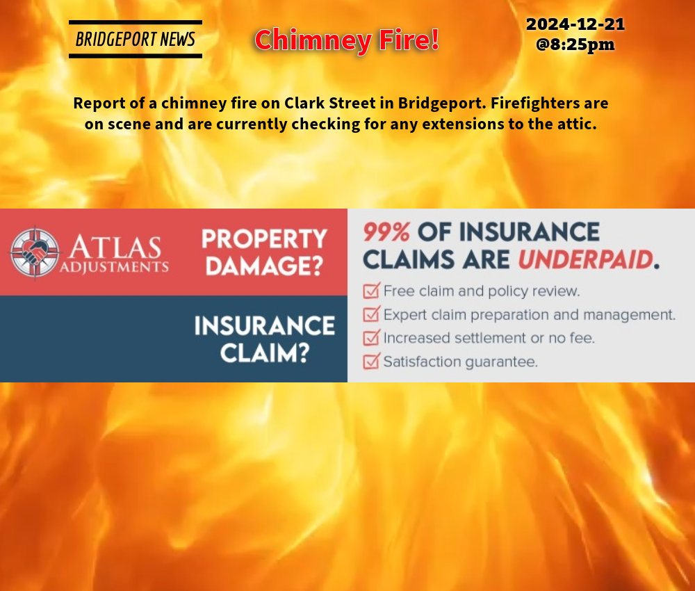 Report of a chimney fire on Clark Street in Bridgeport. Firefighters are on scene and are currently checking for any extensions to the attic.