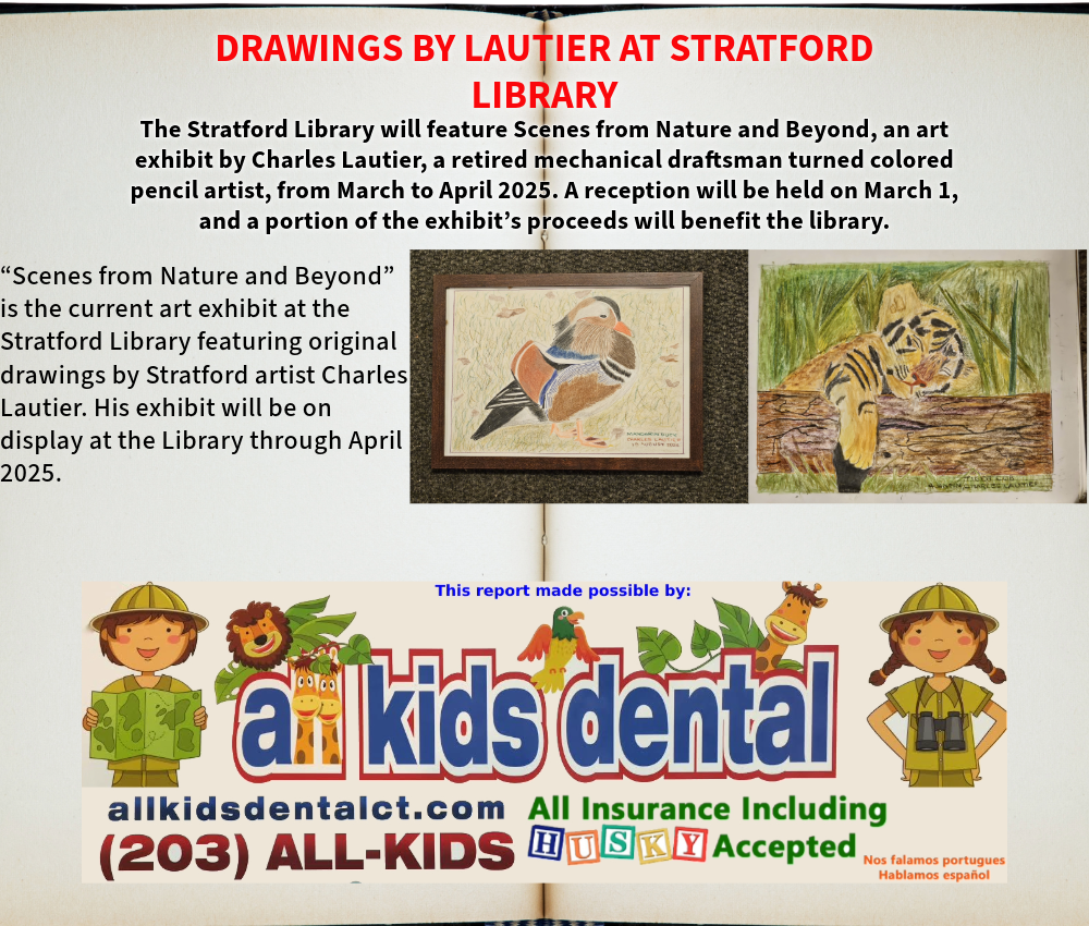 Original drawings by artist Charles Lautier will be the March/April 2025 art exhibit at the Stratford Library. It is the first appearance for the Stratford resident at the library. The exhibit, entitled Scenes from Nature and Beyond, is free and open to the public. Charles Lautier is an immigrant from the Republic of Malta. Currently retired, he started his career as a mechanical draftsman who began the old-fashioned way, with pencil and paper. This skill was, in part, transferable to drawing with colored pencils, a medium he has been working with for several years. He has recently exhibited at the Sterling Community Center at two events organized by the Arts Alliance of Stratford. Lautier is drawn to subjects from nature,…