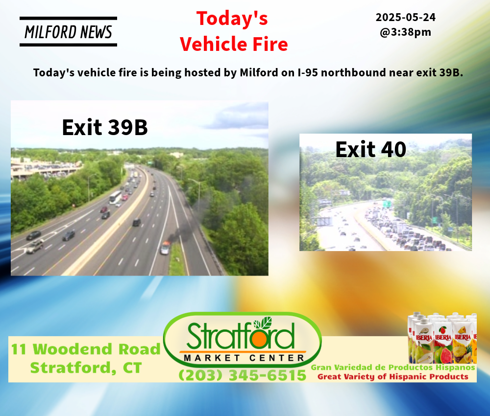 Today’s vehicle fire is being hosted by Milford on I-95 northbound near exit 39B.