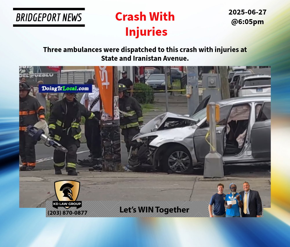 Three ambulances were dispatched to this crash with injuries at State and Iranistan Avenue. 2025-06-27@6:05pm--#Bridgeport CT