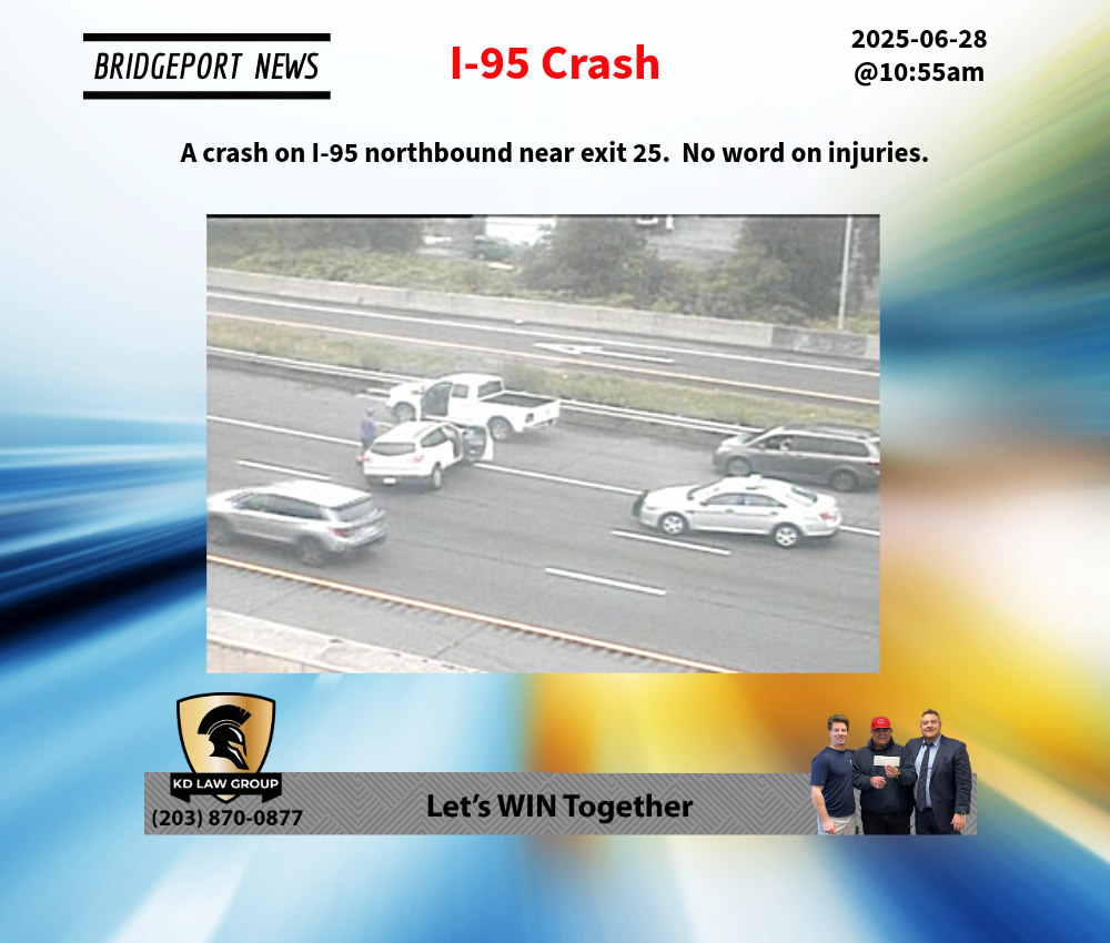 A crash on I-95 northbound near exit 25. No word on injuries. 2025-06-28@10:55am-- #Bridgeport CT --#cttraffic