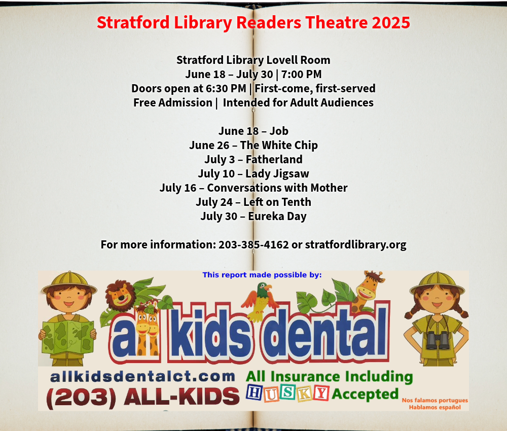 All plays are recommended for adult audiences. For further information, call the Stratford Library Public Relations and Programming Office at 203.385.4162 or visit www.stratfordlibrary.org.