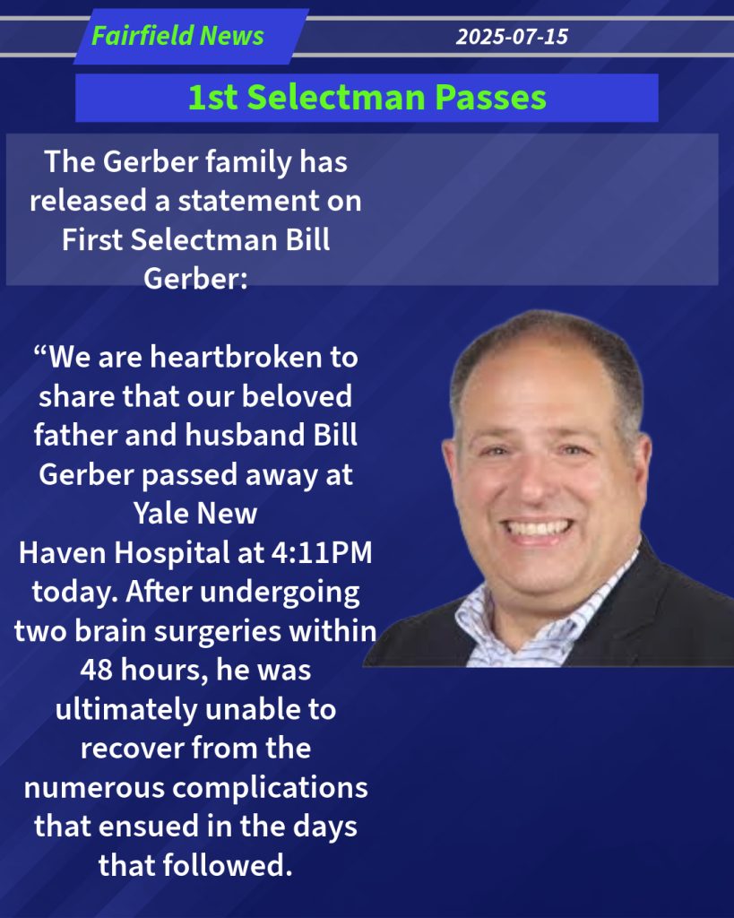 Fairfield, Conn., July 15, 2025—The Gerber family has released a statement on First Selectman Bill