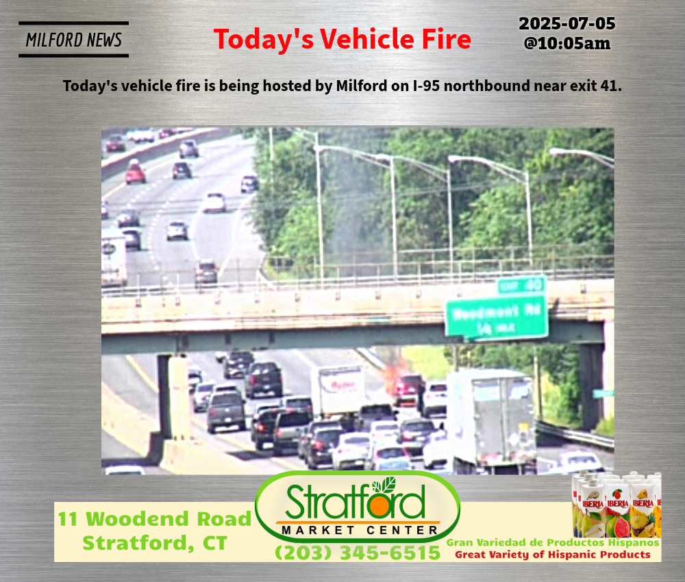 Today’s vehicle fire is being hosted by Milford on I-95 northbound near exit 41.