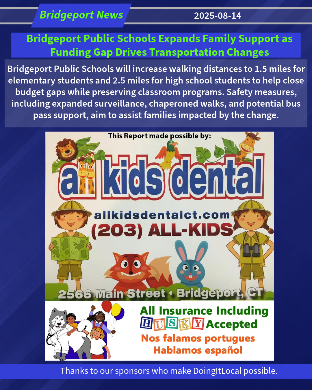 Bridgeport, CT — Bridgeport Public Schools continues to navigate serious financial challenges, including an approximate $67 million budget gap last year which the district managed to close and a projected shortfall in FY26-27. To balance the budget while preserving classroom instruction and essential student services, the district made the difficult decision last spring to adjust student transportation eligibility which extended students walking distance.