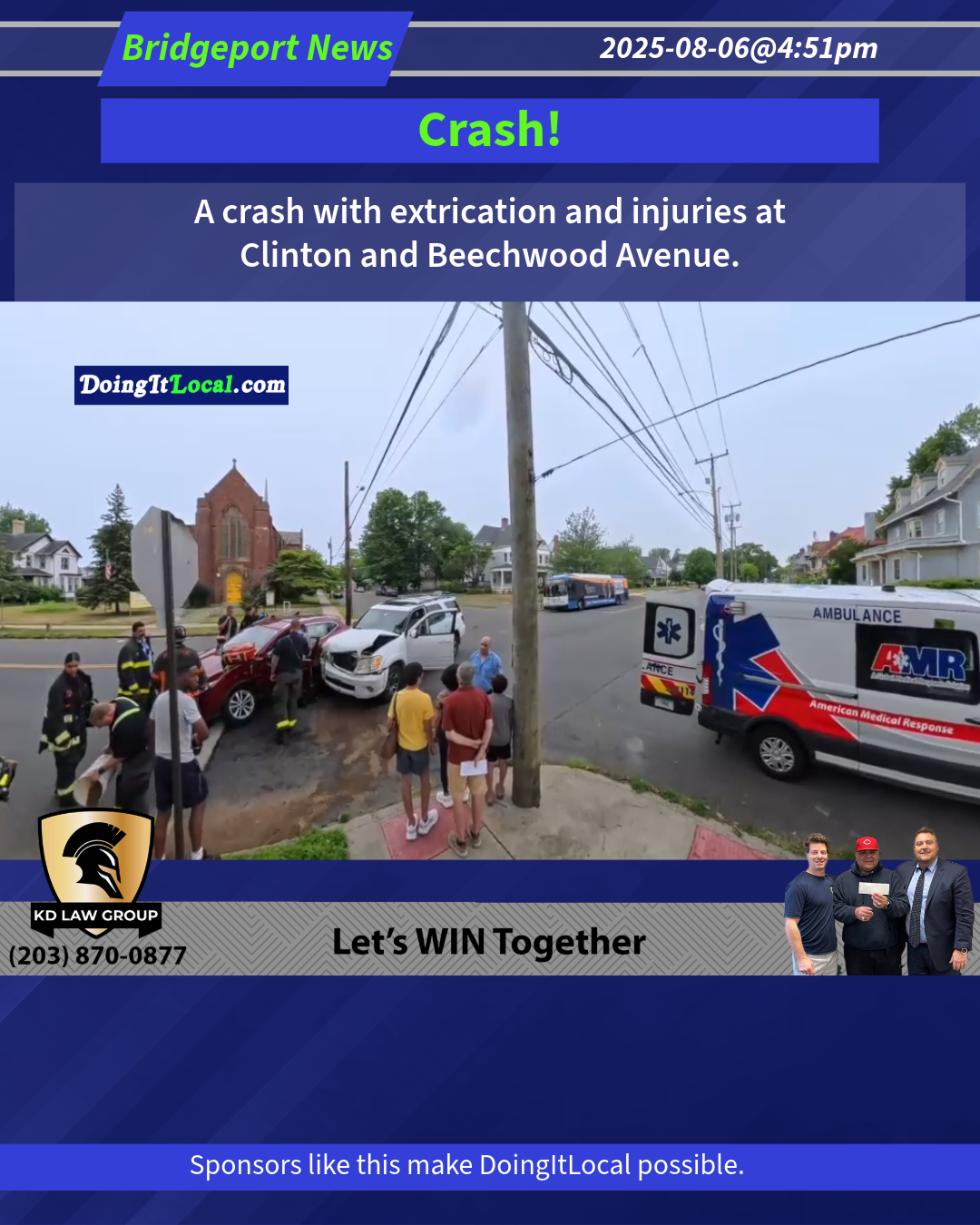 A crash with extrication and injuries at Clinton and Beechwood Avenue.