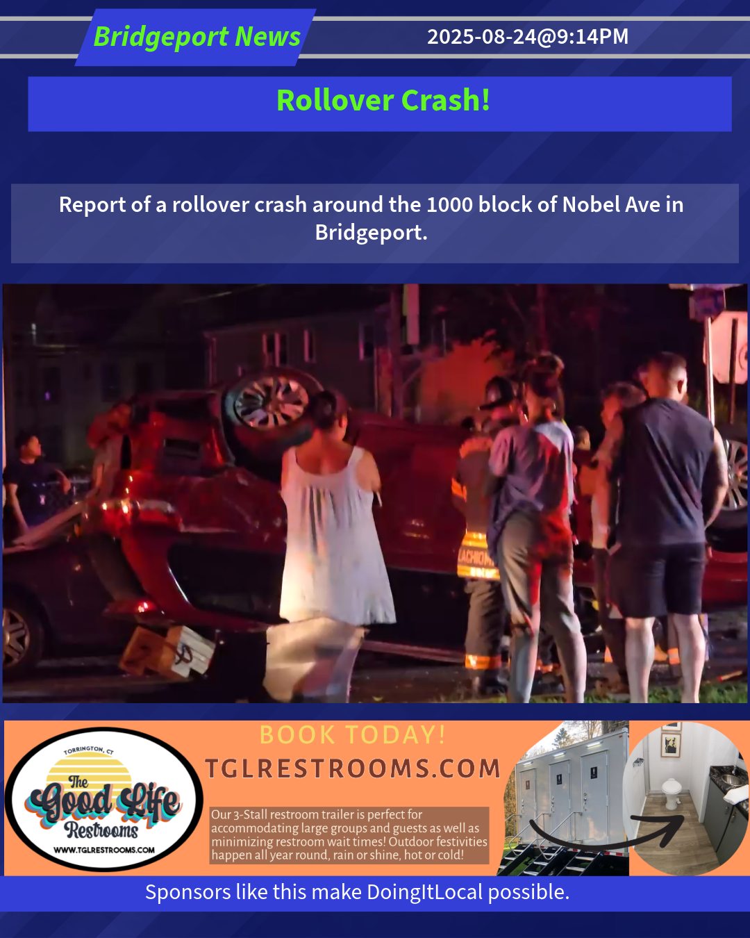 Report of a rollover crash around the 1000 block of Nobel Ave in Bridgeport.