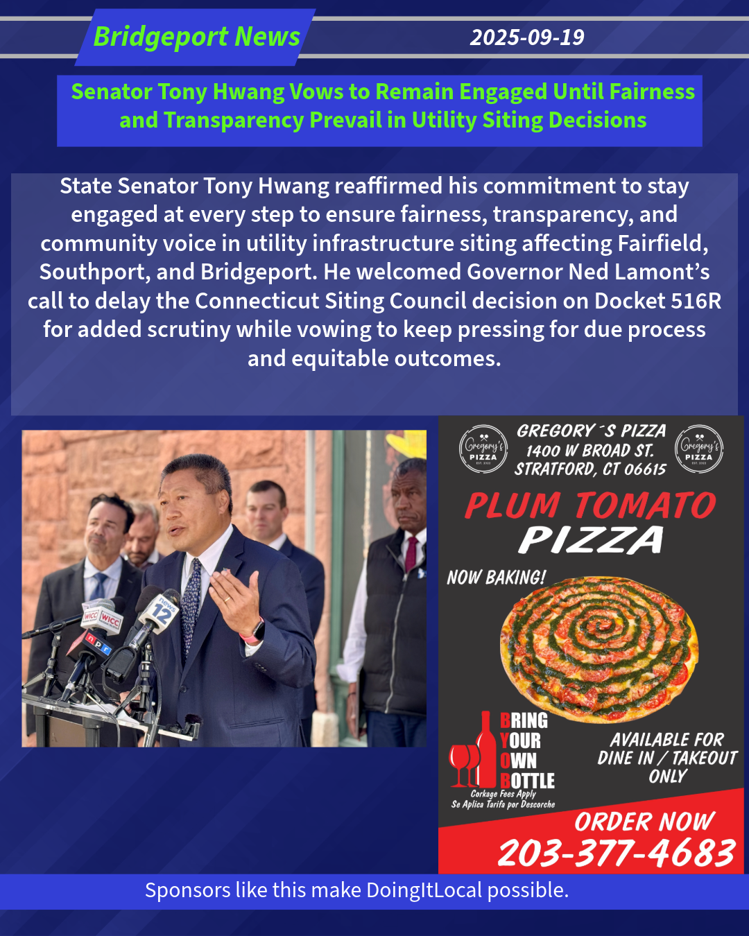 “Rep. Stafstrom, Rep. Felipe, Sen. Gaston, and Mayor Ganim have been steadfast allies in this effort,” Senator Hwang added. “Their dedication shows that this is not just a fight for one neighborhood, one city, or one party. It is a fight for every community to have a say in the future of their environment. We will not back down until we see true fairness and respect for all our people.”