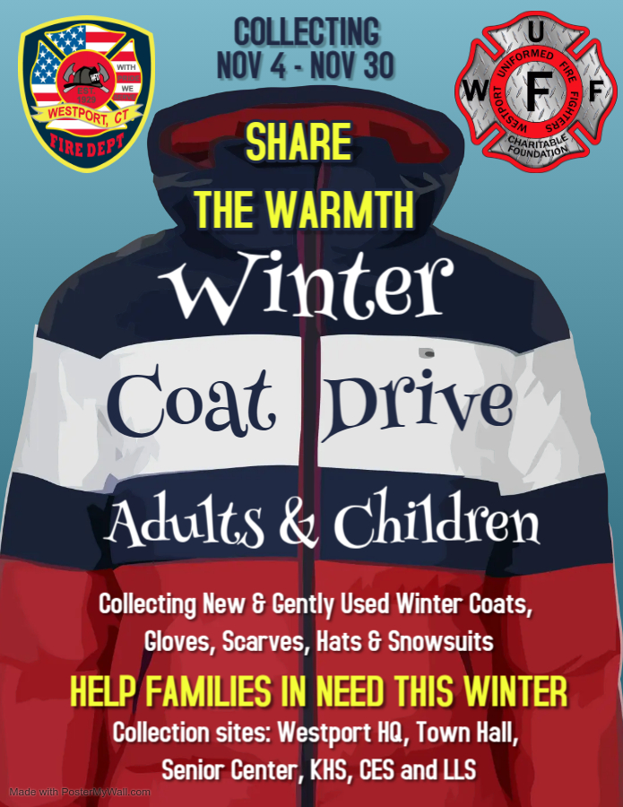 Westport resident and volunteer Anna Rycenga added: “Please join the WFD and me this winter in supporting families in need. Many go without a warm coat, but together, we can make a meaningful difference by sharing the warmth—one coat at a time.”