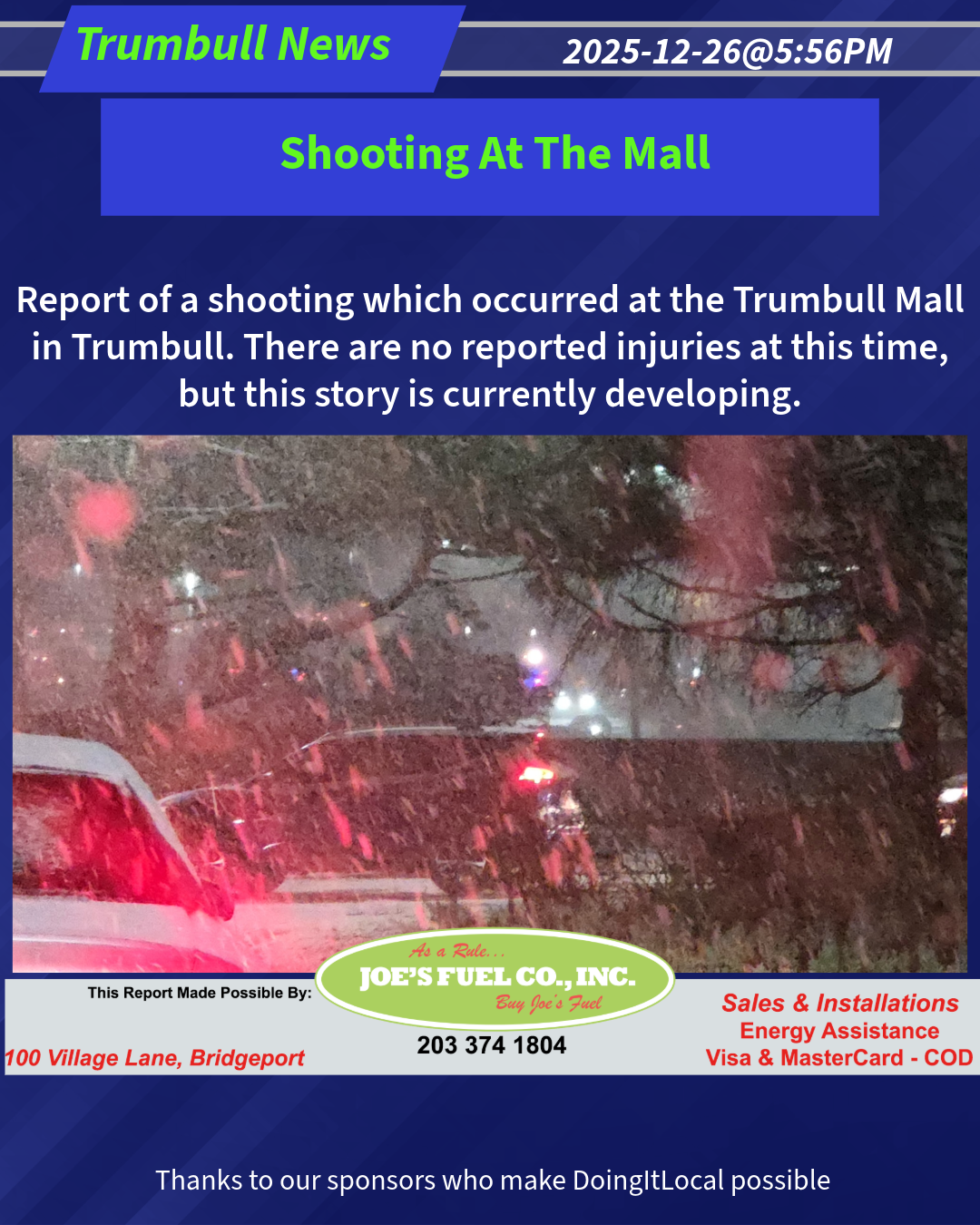 Report of a shooting which occurred at the Trumbull Mall in Trumbull. There are no reported injuries at this time, but this story is currently developing.
