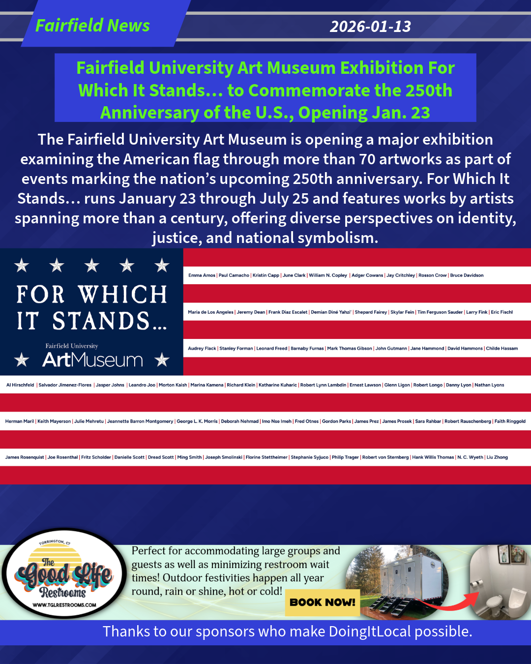 FAIRFIELD, Conn. (Jan. 13, 2026) — The Fairfield University Art Museum is pleased to announce a major loan exhibition planned for spring 2026, as part of a series of cultural and artistic events at Fairfield University commemorating the 250th anniversary—semiquincentennial—of the United States.