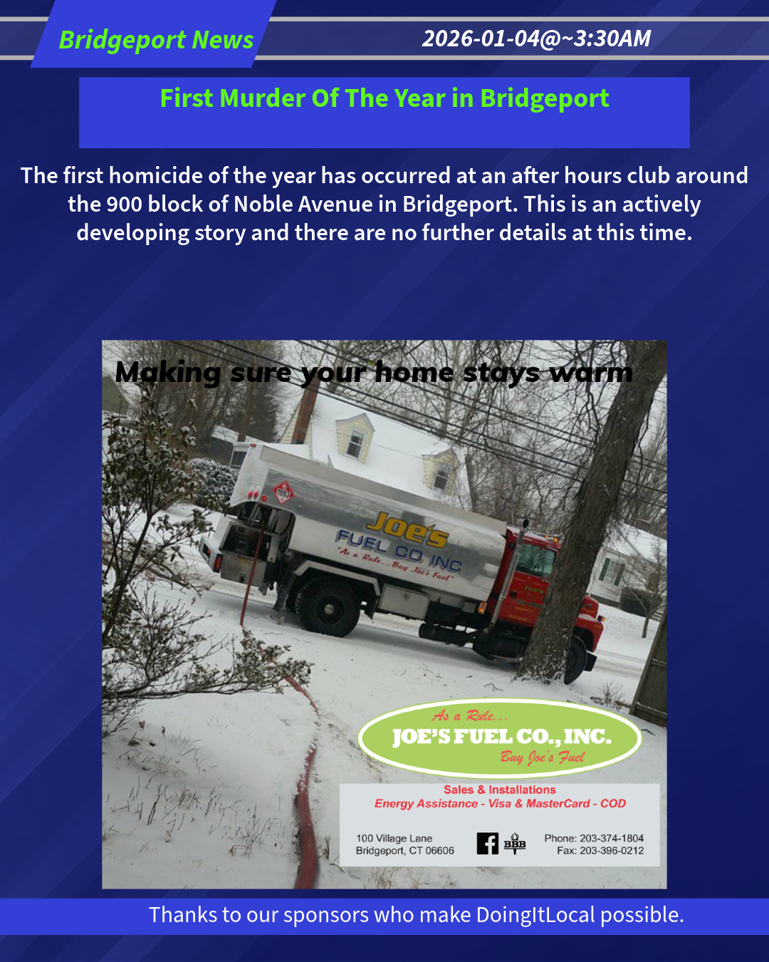 The first homicide of the year has occurred at an after hours club around the 900 block of Noble Avenue in Bridgeport. This is an actively developing story and there are no further details at this time.