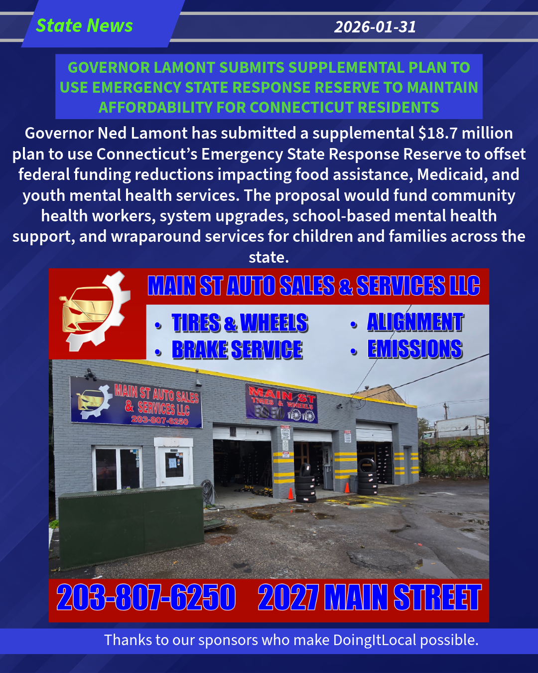 Governor Lamont’s second plan, submitted today, contains the following items:
