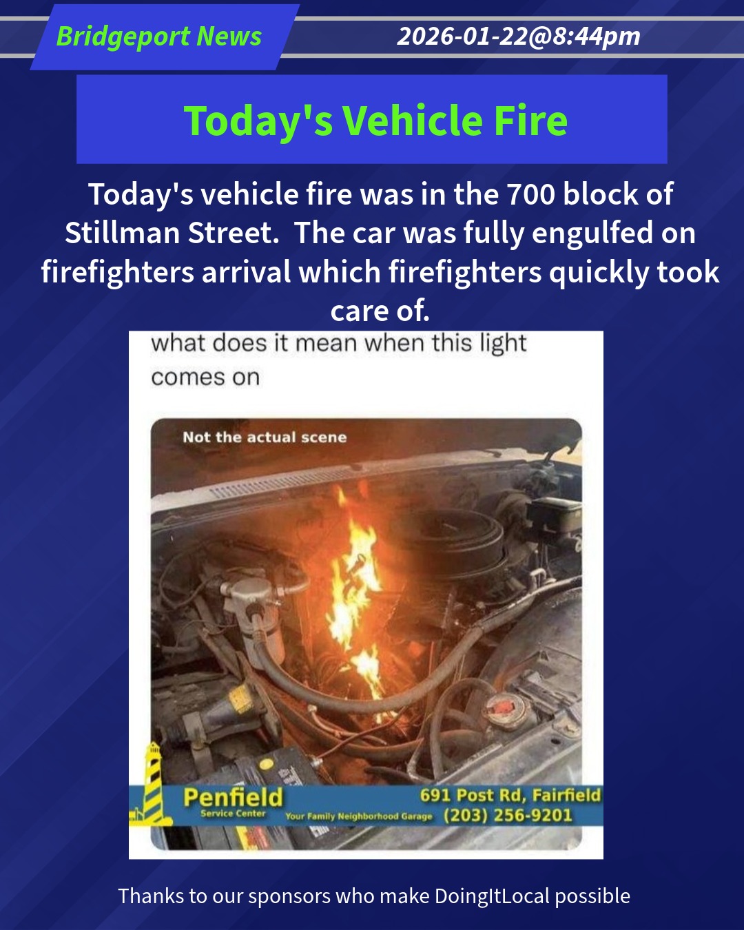 Today’s vehicle fire was in the 700 block of Stillman Street. The car was fully engulfed on firefighters arrival which firefighters quickly took care of.