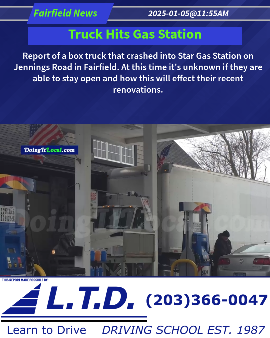 Report of a box truck that crashed into Star Gas Station on Jennings Road in Fairfield. At this time it’s unknown if they are able to stay open and how this will effect their recent renovations.