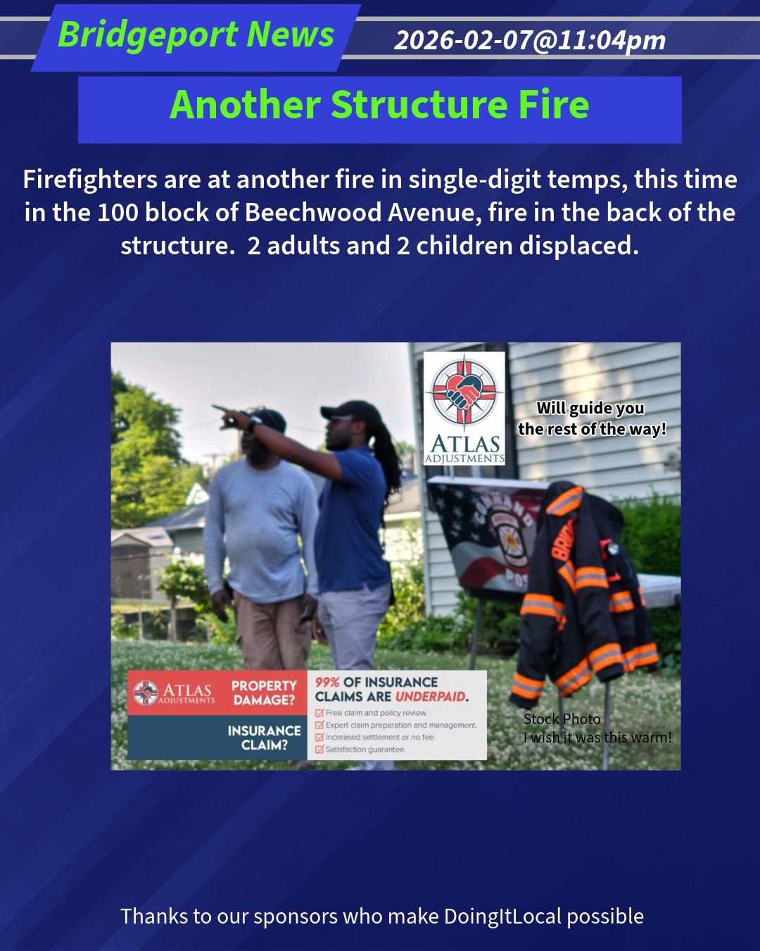 Firefighters are at another fire in single-digit temps, this time in the 100 block of Beechwood Avenue, fire in the back of the structure.