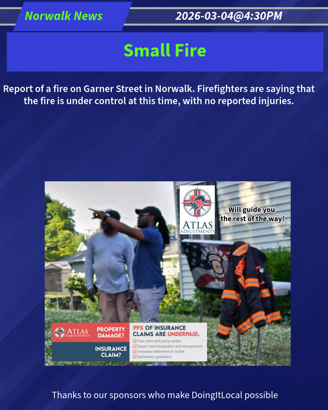 Report of a fire on Garner Street in Norwalk. Firefighters are saying that the fire is under control at this time, with no reported injuries.