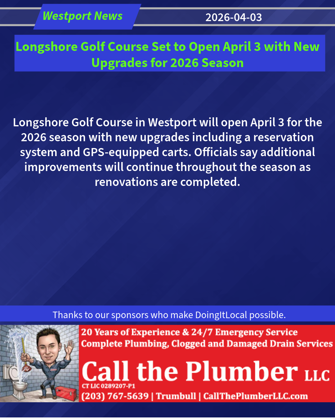 Westport, CT – The Westport Parks and Recreation Department is pleased to announce the opening of Longshore Golf Course and driving range for the 2026 season and looks forward to welcoming golfers back to the course on Friday, April 3. Our staff has been working diligently to prepare the course, pro shop, and operations to ensure a smooth start to the season. Golfers can expect several updates this year aimed at improving the overall experience, including a new reservation system, new carts, enhancements to communication, and continued course improvements.