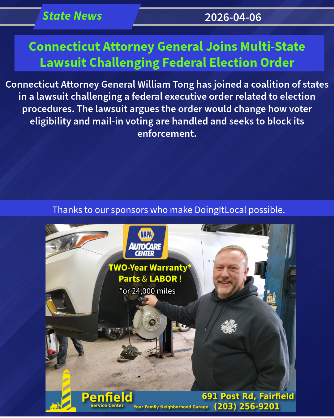 ATTORNEY GENERAL TONG SUES TRUMP ADMINISTRATION OVER UNLAWFUL EXECUTIVE ORDER ATTEMPTING TO EXERT FEDERAL CONTROL OVER ELECTIONS