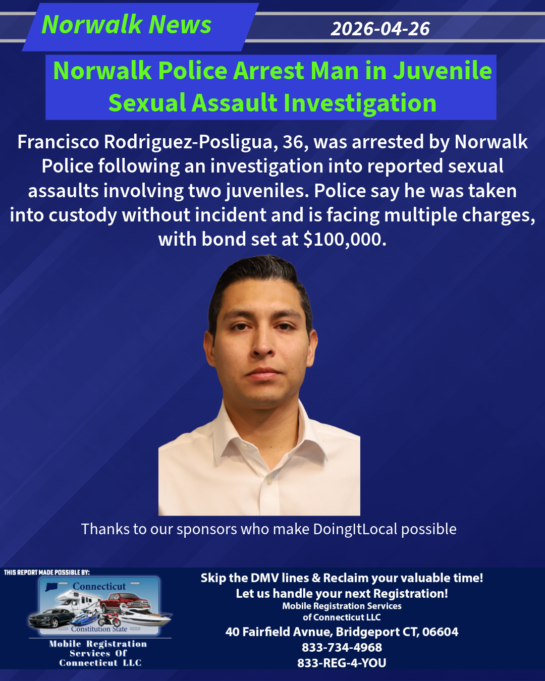 On November 15, 2025, members of the Norwalk Police Department Patrol Division responded to a report of two juveniles who were sexually assaulted. The suspect was reported to be a former family acquaintance.