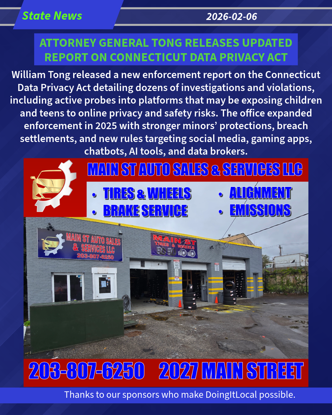 ATTORNEY GENERAL TONG RELEASES UPDATED REPORT ON CONNECTICUT DATA PRIVACY ACT, DISCLOSES ACTIVE INVESTIGATIONS RELATED TO SAFETY OF CHILDREN AND TEENS ONLINE