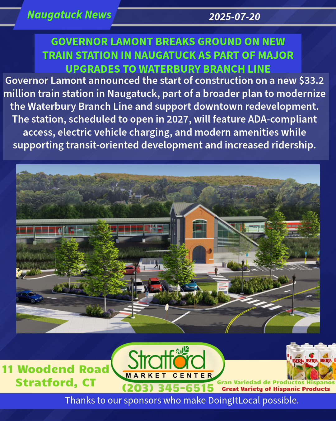 (NAUGATUCK, CT) – Governor Ned Lamont and Connecticut Transportation Commissioner Garrett Eucalitto today announced that the Connecticut Department of Transportation (CTDOT) has begun construction on a new train station in Naugatuck, advancing the Lamont administration’s plan to modernize the entire Waterbury Branch Line and spur downtown redevelopment. The new station is being relocated approximately 0.3 miles south of the existing station, placing it closer to Naugatuck’s downtown and aligning with the borough’s vision for a vibrant, transit-oriented development near Rubber Avenue and Old Firehouse Road. This project is one of several parts of a larger CTDOT initiative to upgrade all six stations on Metro-North’s Waterbury Branch Line. “We’re not just building a train station, we’re building more momentum for Naugatuck’s…