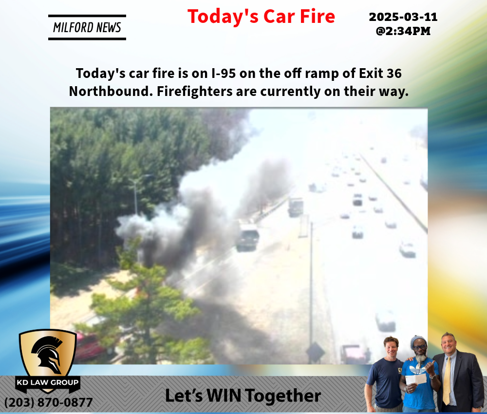 Today's vehicle fire is being hosted by Milford on I-95 northbound near exit 35. Everyone got out of the car safely. 2025-11-19@11:53am-- #Milford CT #cttraffic