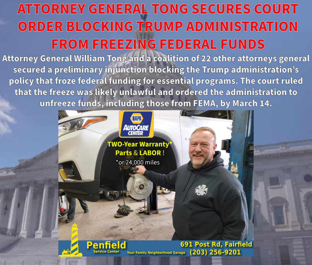 (Hartford, CT) -- Attorney General William Tong today released the following statement after a federal judge blocked the Trump administration’s efforts to penalize states with millions of dollars in fines related to their Supplemental Nutrition Assistance Program (SNAP) operations: “The Trump Administration couldn’t get their own story straight, but wanted to penalize states anyway for not following their unlawful guidance that they had already abandoned. We sued, and once again we have a court order blocking Trump from defunding SNAP and using hunger as a political weapon,” said Attorney General Tong. On November 26, Attorney General Tong joined a coalition of 21 attorneys general in suing the Trump administration after it attempted to cut off SNAP benefits for tens of thousands of lawful permanent…