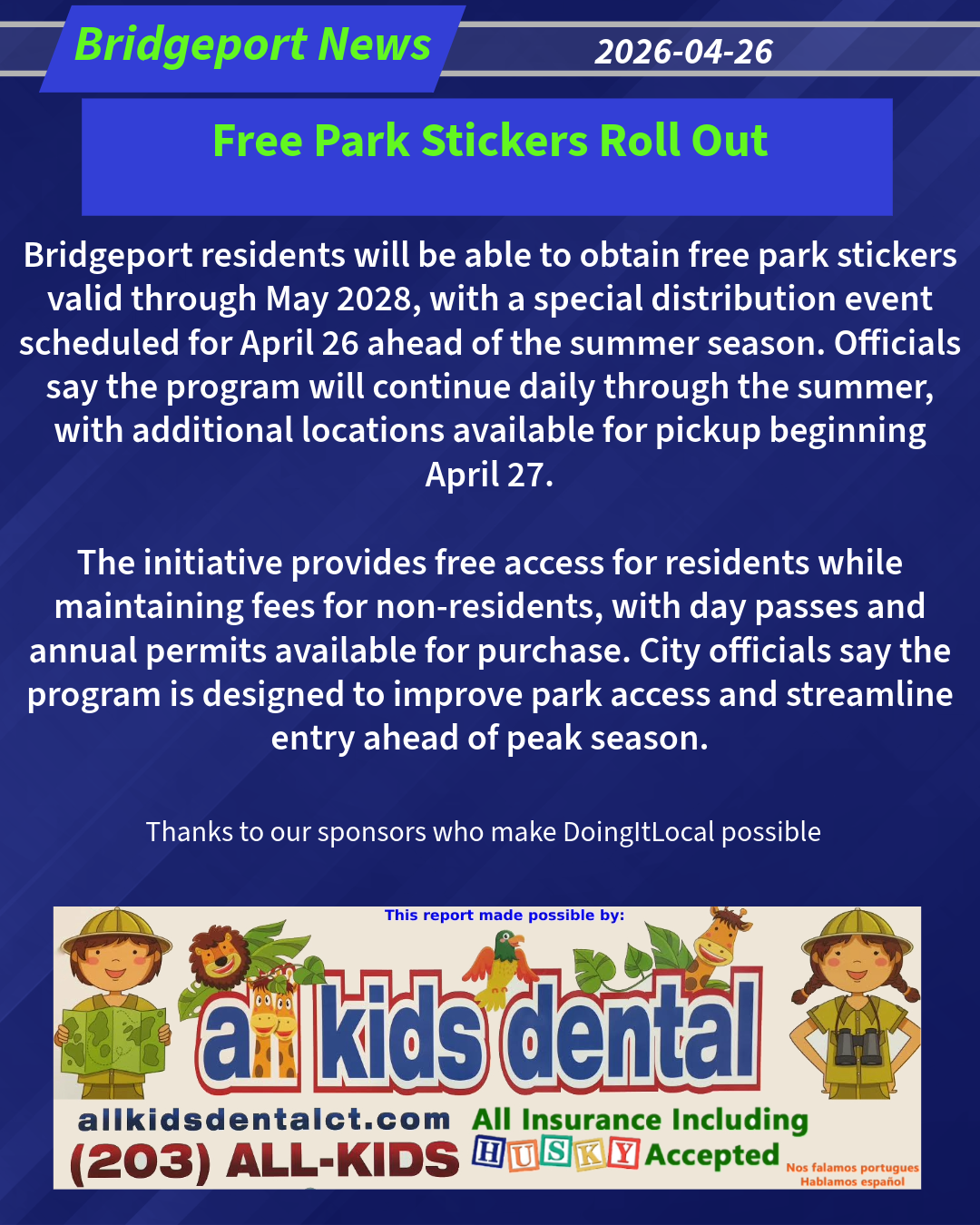 MAYOR GANIM AND THE DEPARTMENT OF PUBLIC FACILITIES ANNOUNCE DISTRIBUTION AND ROLLOUT OF FREE PARK STICKERS AHEAD OF 2026 SEASON BRIDGEPORT, CT – Mayor Joseph Ganim, in partnership with the Department of Public Facilities Parks and Recreation, is pleased to announce the rollout of free park stickers for Bridgeport residents, valid through May 2028. A special distribution day will take place on Sunday, April 26, 2026, ahead of the official opening of City parks for Memorial Day weekend. On April 26, residents may obtain their free park stickers at the following locations from 8am to 4pm: Seaside Park – West Beach Seaside Park – Perry Memorial Arch Additional Distribution Locations (Starting April 27) Beginning Monday, April 27, 2026, residents may…