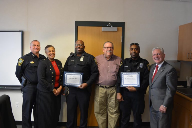 Officer Tyrone Boyd and Officer Shoubert Paulemon were named the February 2017 Norwalk Police Department Officers of the Month. Officers Boyd and Paulemon responded to a residence for a suicidal person call. Upon their arrival, they found a very distraught person holding a knife to their throat and threatening suicide. These officers calmly talked to the person and got her/him to put the knife down. The individual was transported to the hospital for evaluation. This person recently sent a letter to Chief Kulhawik thanking the officers for saving her/his life. These officers’ actions in diffusing a dangerous situation speak to their professionalism and character. Congratulations to you both.